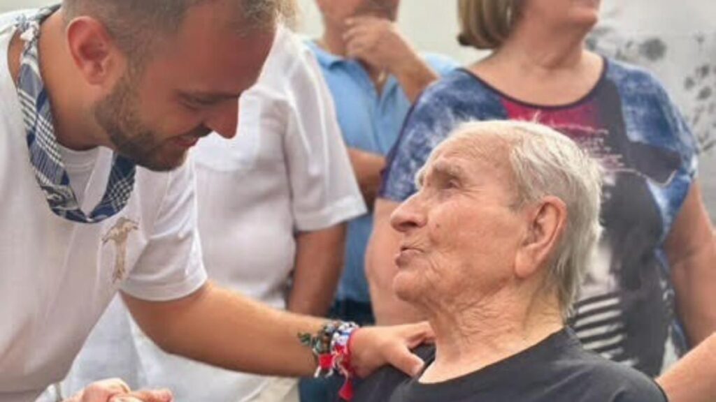 El alcalde de Arganda del Rey felicita al vecino Miguel Bernabé, que cumple 100 años en el día de la ofrenda a la virgen