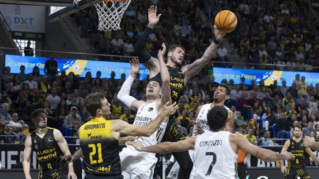 Una derrota -otra más- de lo más dolorosa, para La Laguna Tenerife ante el Real Madrid. Casi como si estuviera condenado por el destino, el cuadro aurinegro ha caído en un desenlace cruel (70-71) tras haber batallado durante los 40 minutos para tratar de tumbar a una de sus bestias negras. Una canasta sobre la bocina de Sergio Llull, cuando el CB Canarias había levantado un adverso 63-69 (llegó a estar incluso 13 arriba el cuadro blanco), sentenció en esta ocasión a los de Txus Vidorreta.