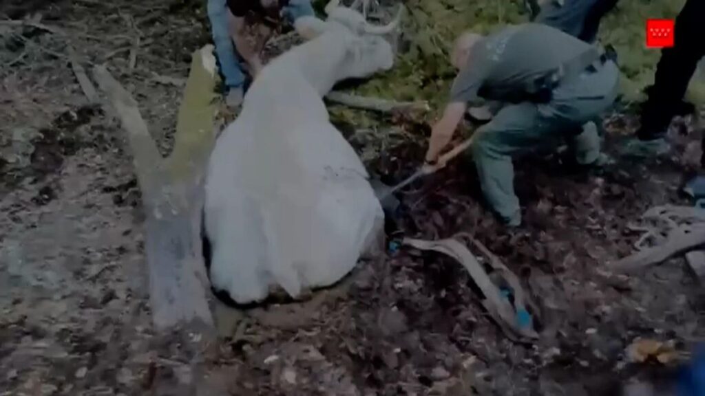 Los bomberos de Madrid rescatan a una vaca que estaba atascada en una tubería
