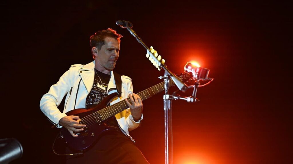 Corría ya una agradecida brisa nocturna cuando, a eso de las once de la noche, Bellamy y sus compañeros salieron al escenario y comenzaron a sonar los sintetizadores de Unravelling, su último single publicado hace solo unas semanas. En él se concentran todas las esencias de la banda inglesa: las voces épicas, las guitarras casi metaleras, el pespunte electrónico y esos cambios dentro del mismo tema, de la paz a la tormenta, a los que son tan aficionados. En un Mad Cool 2025 que tiene bastante de ‘operación nostalgia’, Muse llegaban al asalto para hacer felices a quienes les llevan siguiendo desde que su cantante llevaba el pelo pincho, allá por finales de los 90.