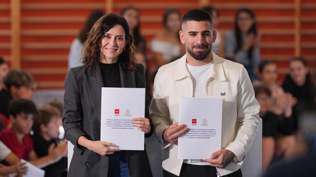 Topuria se alía con Ayuso contra el ‘bullying’ y las drogas: ‘Yo también lo he sufrido’