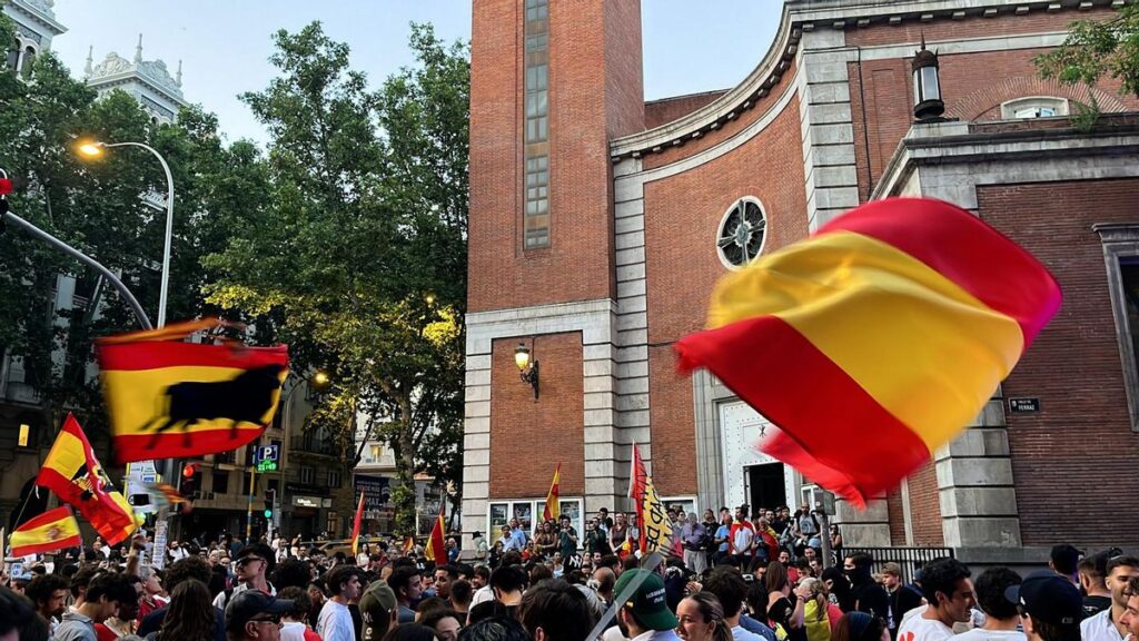 Una jueza imputa a seis personas por el ahorcamiento del muñeco de Sánchez en la protesta de Nochevieja en Ferraz